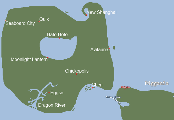 The Feather strait is the strait between Flokk and Piggania, as shown on the map. Many cities have been estblished on both sides of the strait. Ferry rides across the strait are available for either 15 towies or 15 eggos.